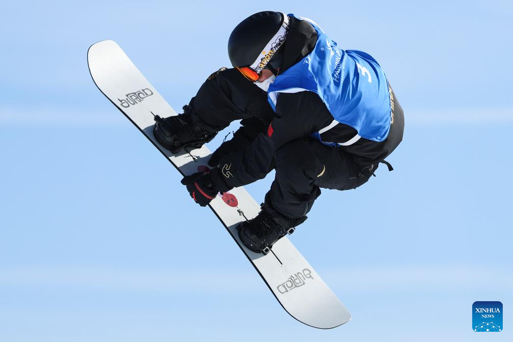 Liu Haoyu of China competes during the men's snowboard big air final match at the 9th Asian Winter Games in Yabuli, northeast China's Heilongjiang Province, Feb. 10, 2025. (Xinhua/Yang Qing)