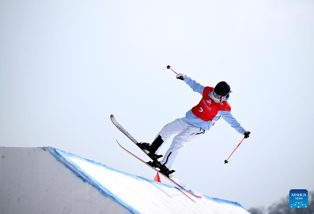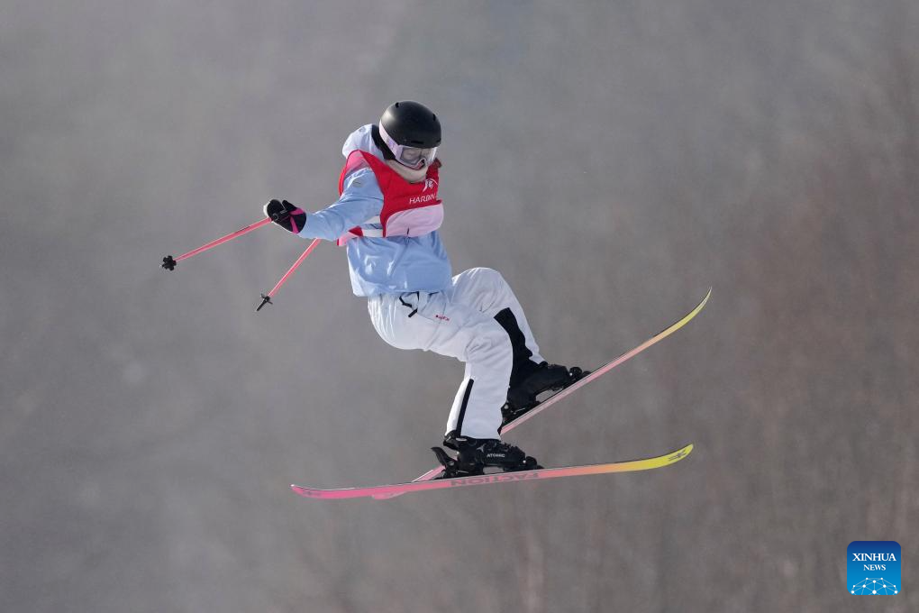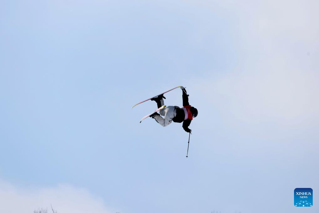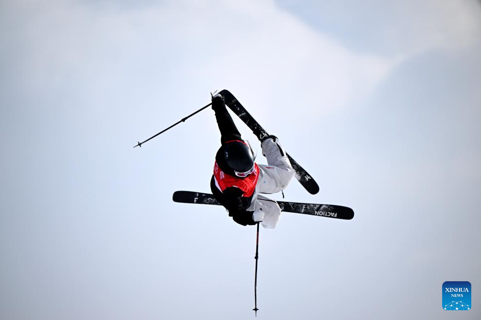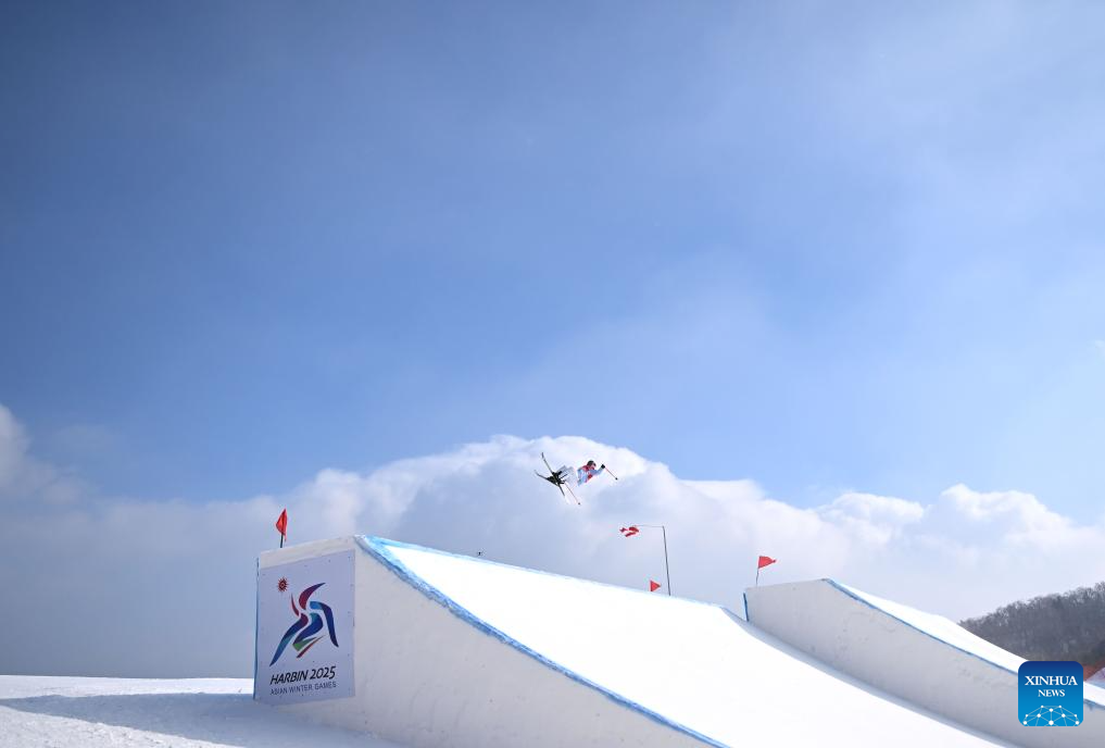 Han Linshan of China competes during the Freestyle Skiing women's freeski big air final match at the 9th Asian Winter Games in Yabuli, northeast China's Heilongjiang Province, Feb. 12, 2025. (Xinhua/Zhang Chenlin)
