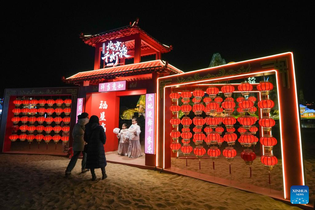 People visit a lantern fair at Beijing Garden Expo Park in Beijing, capital of China, Feb. 10, 2025. Two major lantern fairs are held in Beijing to mark the Lantern Festival, which falls on Wednesday. (Xinhua/Ju Huanzong)