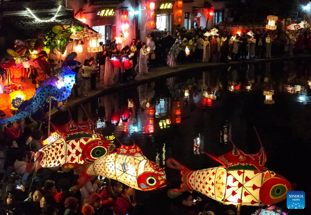 People celebrate Lantern Festival with fish-shaped lanterns in E China's Anhui