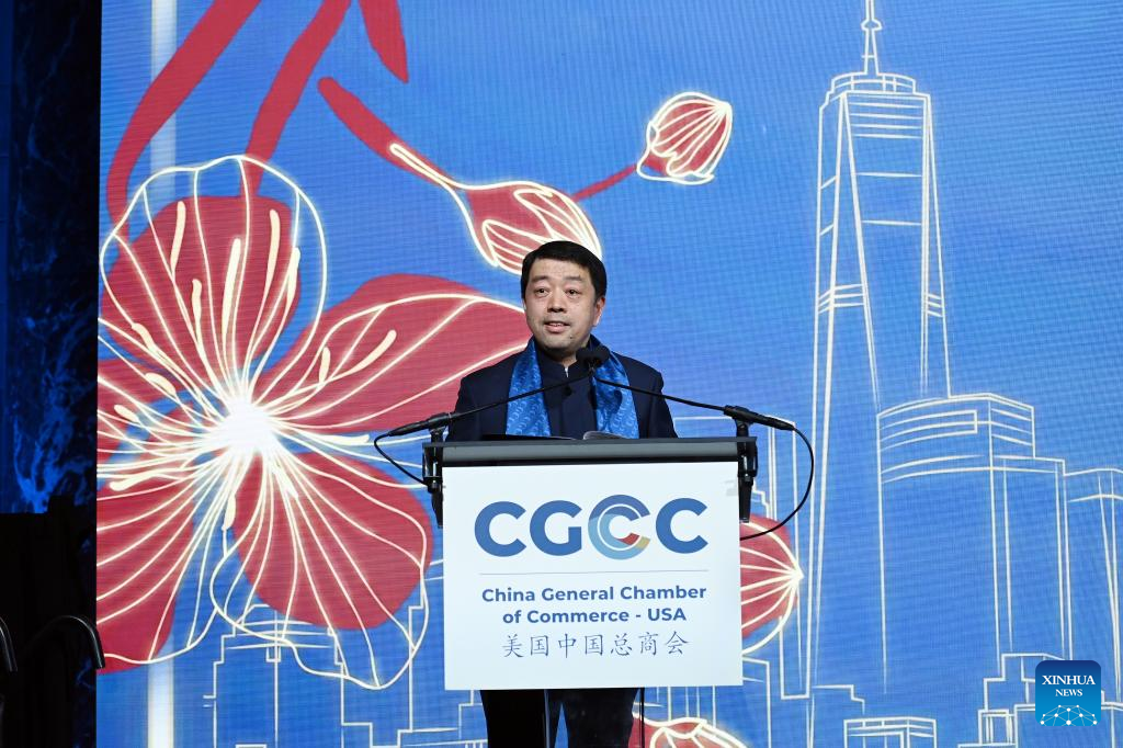 Chinese Ambassador to the United States Xie Feng speaks during the 20th anniversary gala of the China General Chamber of Commerce-USA (CGCC) in New York City, the United States, on Feb. 11, 2025. (Xinhua/Li Rui)