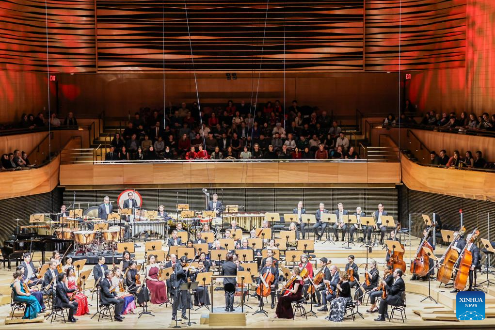 Artists perform in a concert celebrating the Spring Festival by the New York Philharmonic in New York City, the United States, Feb. 11, 2025. (Photo by Winston Zhou/Xinhua)