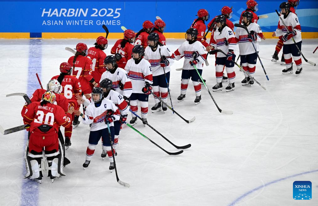 HARBIN, Feb. 12 (Xinhua) -- China defeated South Korea 2-1 in a women's ice hockey Group A match at the 2025 Harbin Asian Winter Games on Wednesday, and Japan cruised past Kazakhstan 4-0.