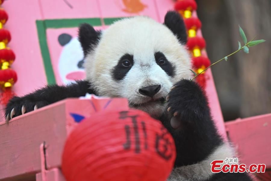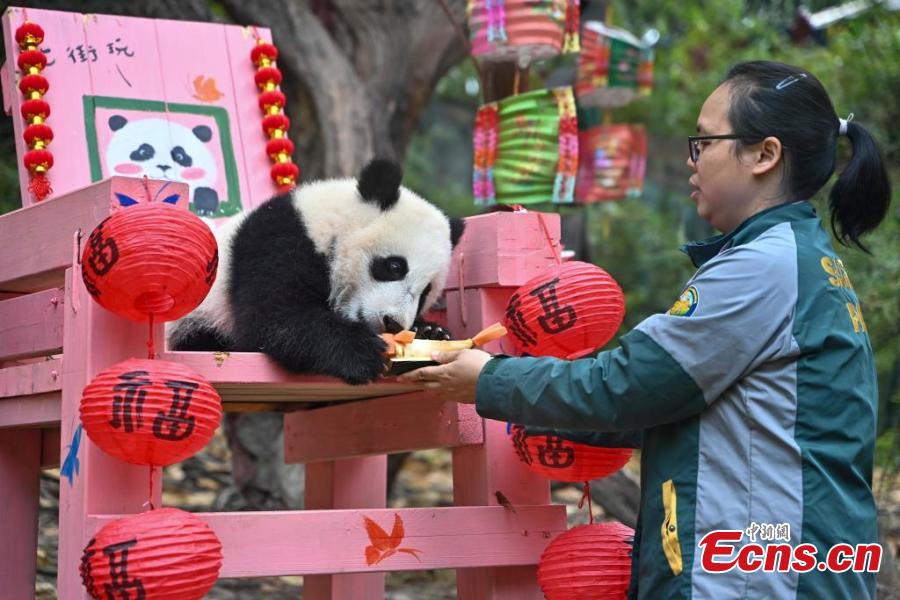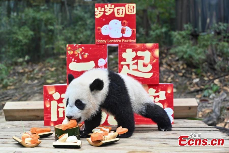 Giant panda cub enjoys special treat for Lantern Festival in Guangzhou