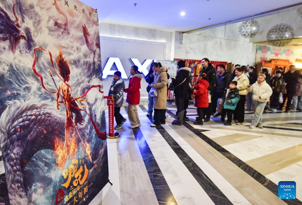 People walk into a cinema in Shenyang, northeast China's Liaoning Province, Feb. 3, 2025.(Xinhua/Pan Yulong)