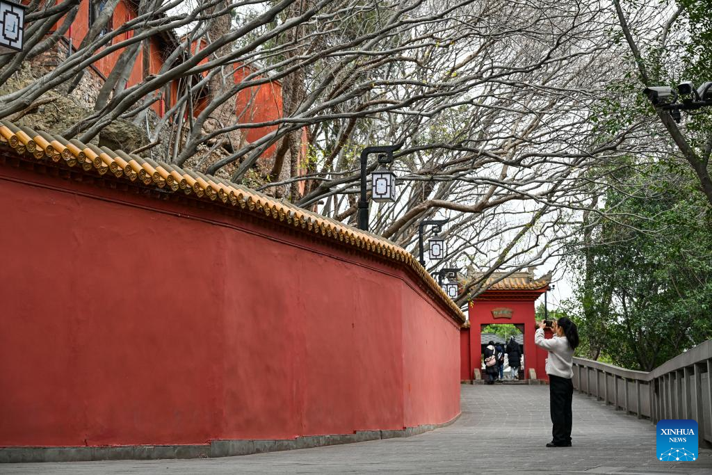 A tourist takes photos in the ancient town of Baidi in Fengjie County, southwest China's Chongqing Municipality, Feb. 13, 2025. Fengjie, a county in Chongqing where the Kuimen gateway to the magnificent gorges of the Yangtze River is located, gained its reputation as the "city of poetry," as poets, military figures and politicians in history wrote extensively about the forbidding landscape of rapid currents and narrow waterways.
