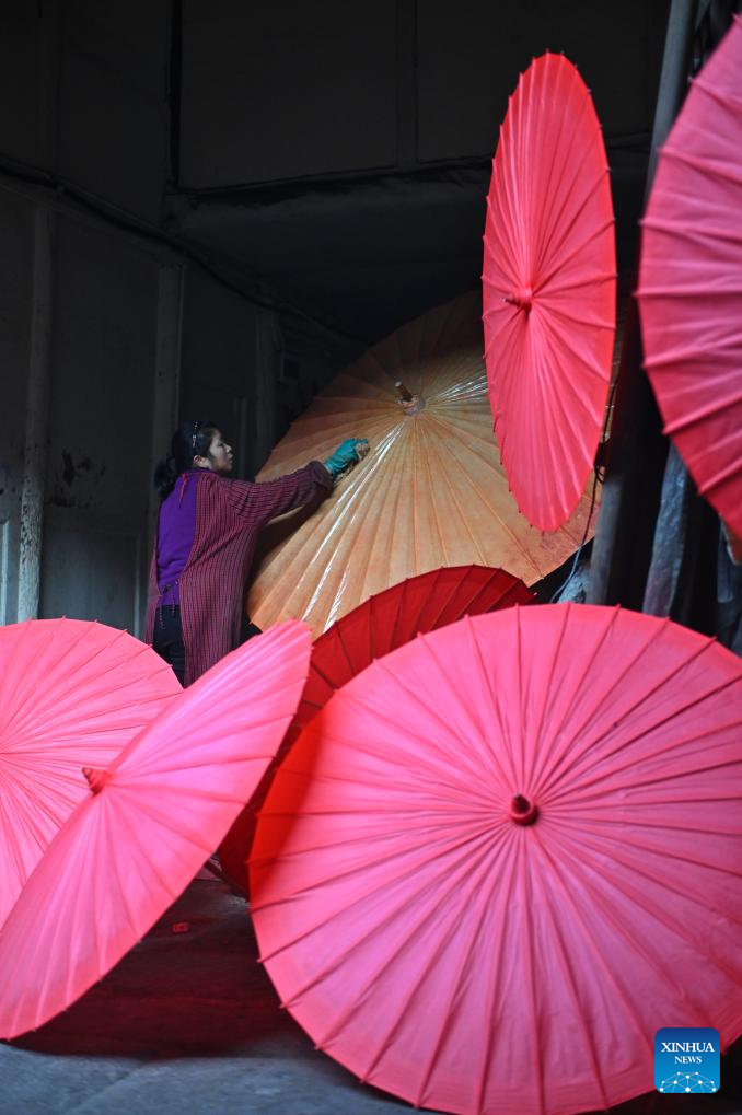 Pic story of oil-paper umbrella making in Fenshuiling, China's Sichuan