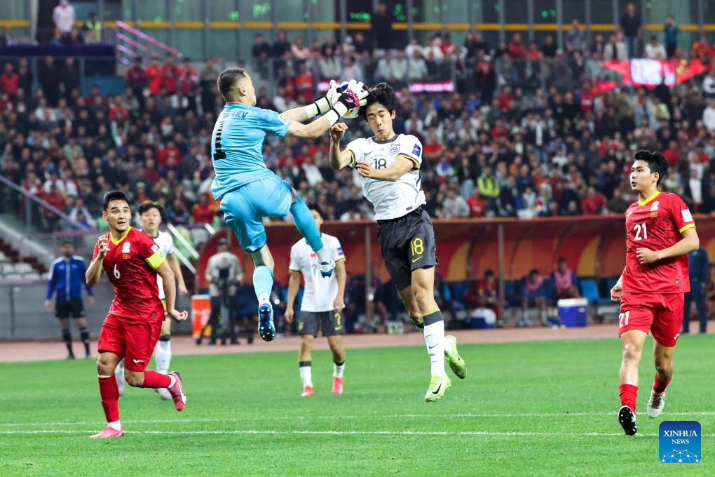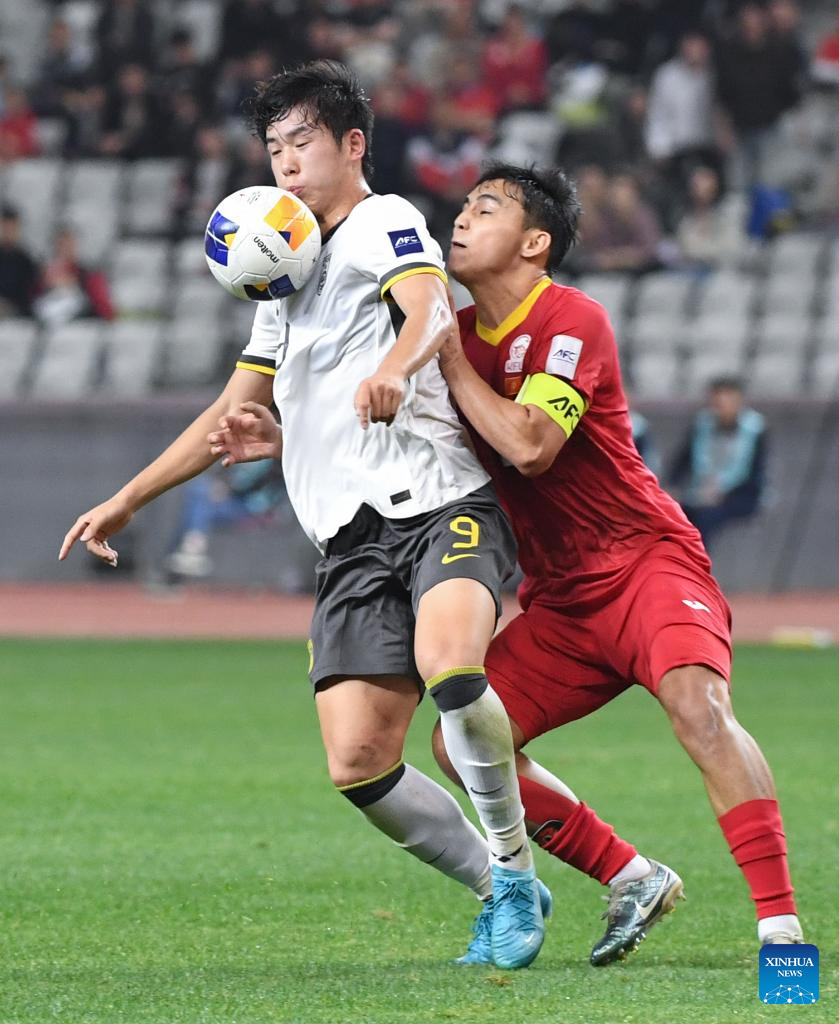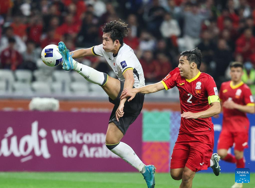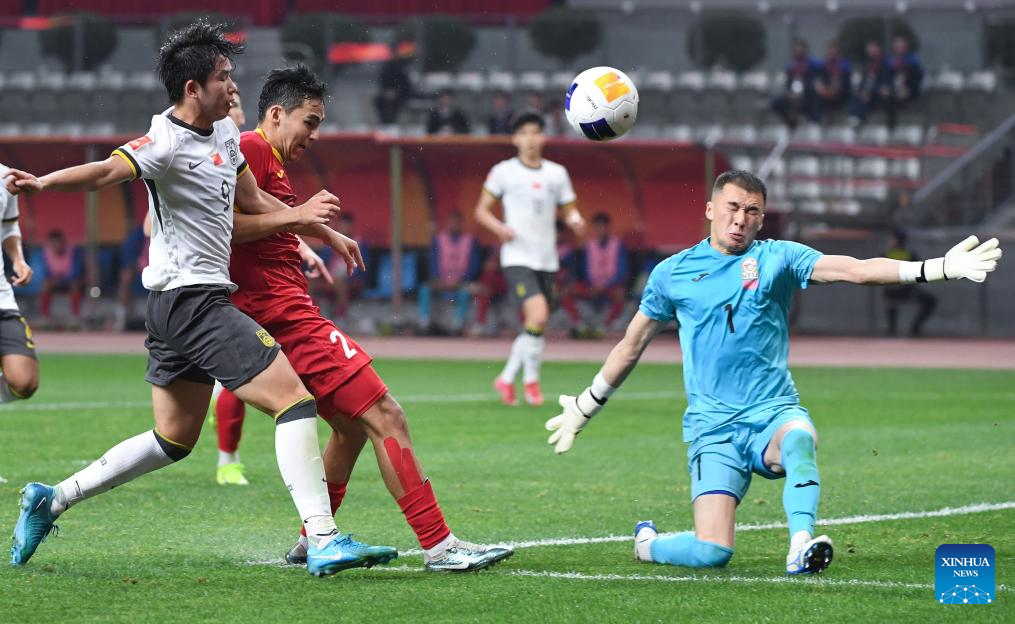 Yryskeldi Madanov's header gave Kyrgyzstan a lifeline in the 65th minute, but China nearly restored its advantage five minutes later, only for substitute Zhu Pengyu's header to be denied by the crossbar.