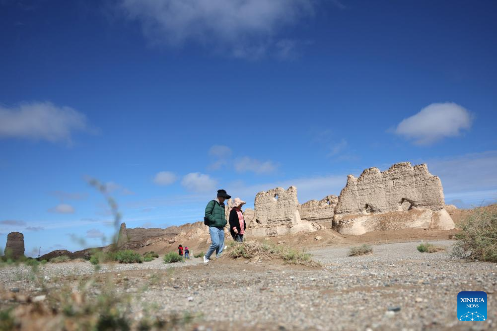 Tourists visit the site of Yumen Pass in Dunhuang, northwest China's Gansu Province, Sept. 4, 2024. Around 2,000 years ago, Dunhuang was a key hub on the ancient Silk Road. Chinese silk and tea passed through this gateway en route to other countries, while agricultural products such as grapes, carrots and pomegranates made their way into China.