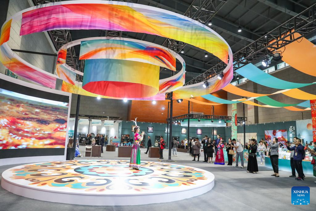 Tourists visit the 7th Silk Road (Dunhuang) International Cultural Expo in Dunhuang, northwest China's Gansu Province, Sept. 21, 2024. Around 2,000 years ago, Dunhuang was a key hub on the ancient Silk Road. Chinese silk and tea passed through this gateway en route to other countries, while agricultural products such as grapes, carrots and pomegranates made their way into China.