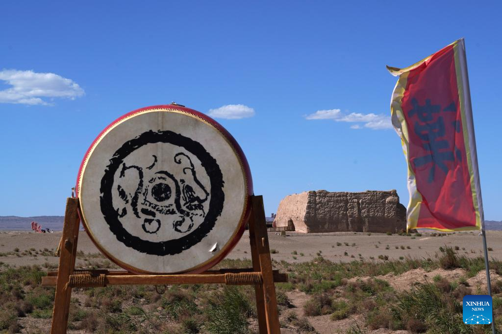 This photo taken on July 16, 2024 shows a view of the site of Yumen Pass in Dunhuang, northwest China's Gansu Province. Around 2,000 years ago, Dunhuang was a key hub on the ancient Silk Road. Chinese silk and tea passed through this gateway en route to other countries, while agricultural products such as grapes, carrots and pomegranates made their way into China.