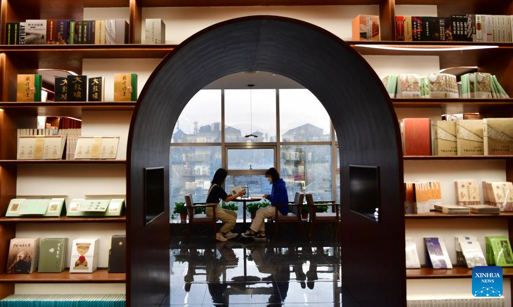 People read books at a bookstore in Dunhuang, northwest China's Gansu Province, April 21, 2022. Around 2,000 years ago, Dunhuang was a key hub on the ancient Silk Road. Chinese silk and tea passed through this gateway en route to other countries, while agricultural products such as grapes, carrots and pomegranates made their way into China.