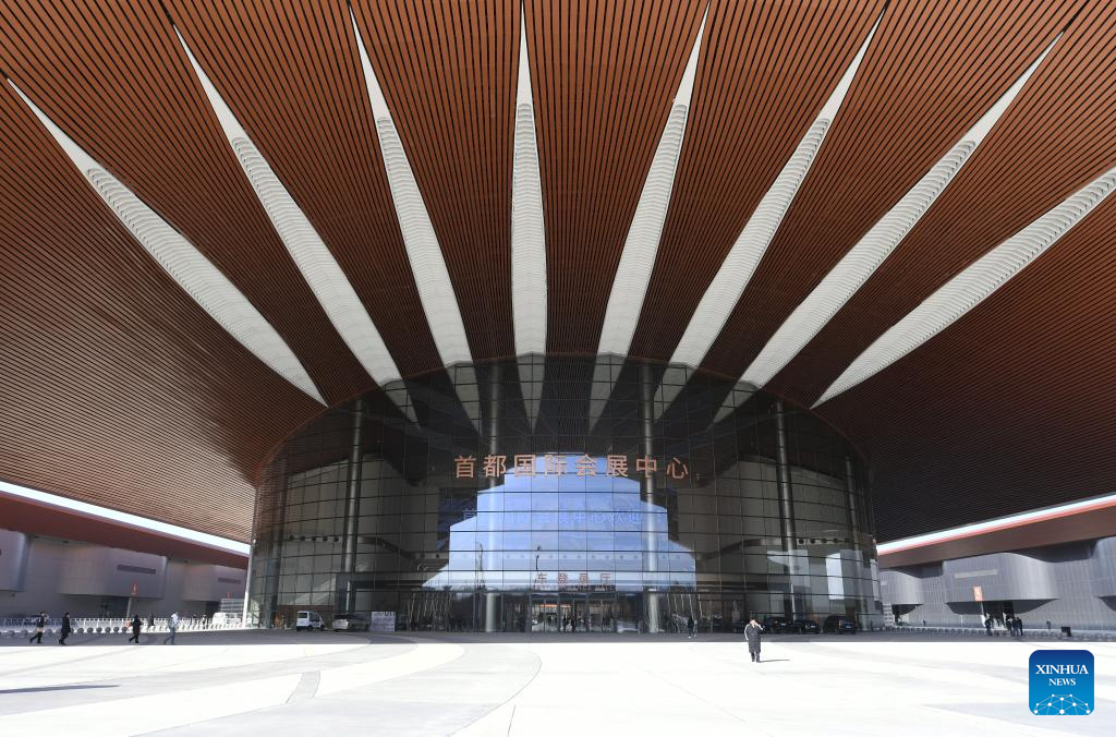 This photo taken on Feb. 19, 2025 shows the exterior view of the Capital International Exhibition & Convention Center(CIECC) in Shunyi District of Beijing, capital of China. CIECC is a comprehensive exhibition venue integrating exhibition venues, conference centers and hotels. The construction of the venue officially began in September 2021, and the exhibition center and conference center completed construction in December 2024, with the conditions for operation.