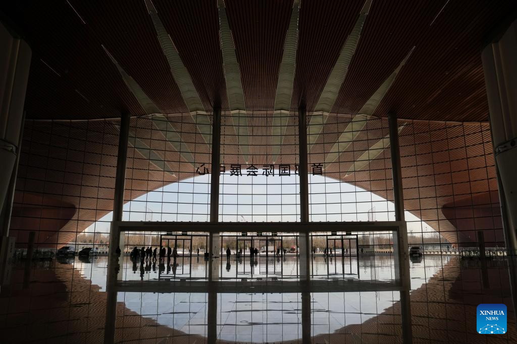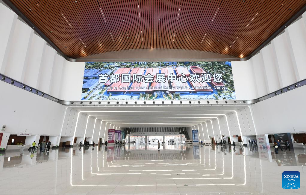 This photo taken on Feb. 19, 2025 shows the interior view of the Capital International Exhibition & Convention Center(CIECC) in Shunyi District of Beijing, capital of China. CIECC is a comprehensive exhibition venue integrating exhibition venues, conference centers and hotels. The construction of the venue officially began in September 2021, and the exhibition center and conference center completed construction in December 2024, with the conditions for operation.