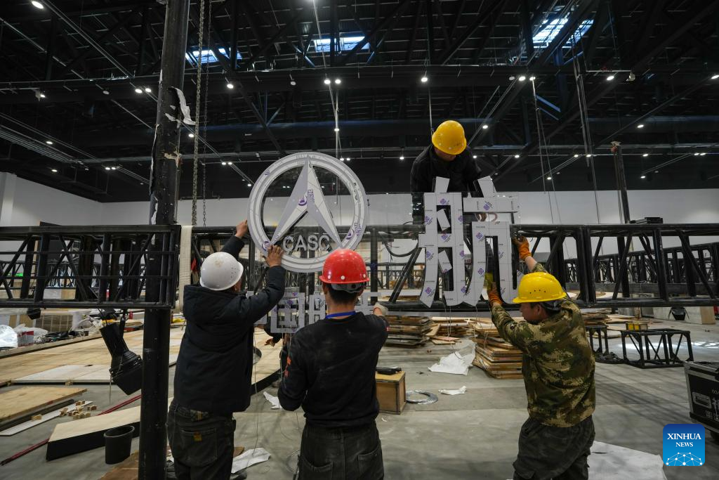 Staff members set up exhibitions at the Capital International Exhibition & Convention Center(CIECC) in Shunyi District of Beijing, capital of China, Feb. 19, 2025. CIECC is a comprehensive exhibition venue integrating exhibition venues, conference centers and hotels. The construction of the venue officially began in September 2021, and the exhibition center and conference center completed construction in December 2024, with the conditions for operation.