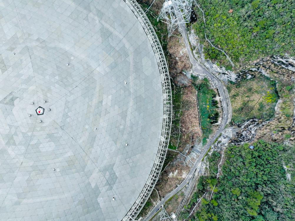 An aerial drone photo taken on Feb. 18, 2025 shows China's Five-hundred-meter Aperture Spherical Radio Telescope (FAST) under maintenance in southwest China's Guizhou Province. (Xinhua/Ou Dongqu)