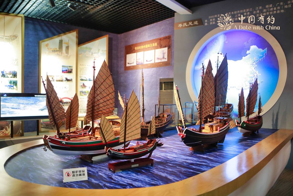 Wooden boat models are displayed at a museum on Cen's Shipyard in Zhoushan, East China's Zhejiang province, May 17, 2023. (Photo/chinadaily.com.cn)