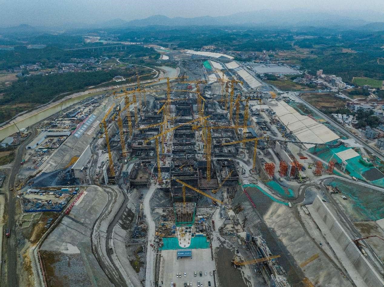 Photo taken on Dec. 12, 2024 shows the construction site of the Qishi junction of the Pinglu Canal in Qinzhou, south China's Guangxi Zhuang autonomous region. (People's Daily Online/Liu Zheng)