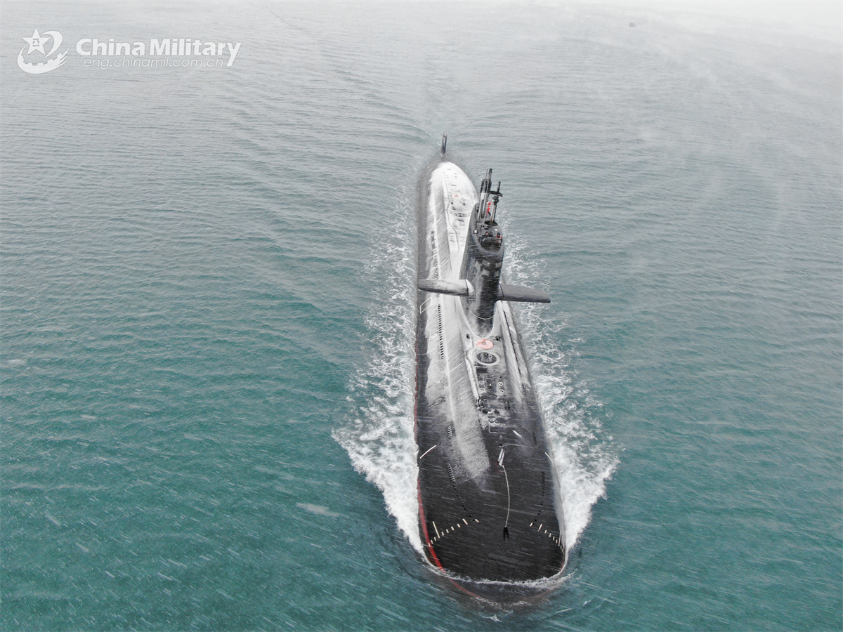 A submarine attached to a submarine flotilla with the navy under the Chinese PLA Northern Theater Command steams toward the designated area for a combat training exercise in mid-February 2025. (eng.chinamil.com.cn/Photo by Zhang Nan)