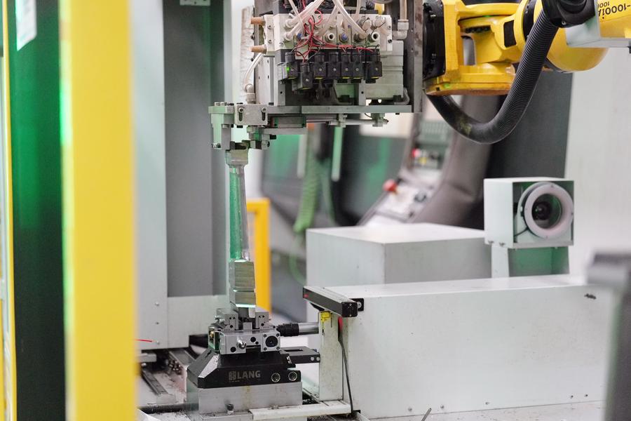 A robotic arm operates at a smart production line of Harbin Turbine Company Ltd. in Harbin, northeast China's Heilongjiang Province, Feb. 26, 2025. (Xinhua/Wang Song)