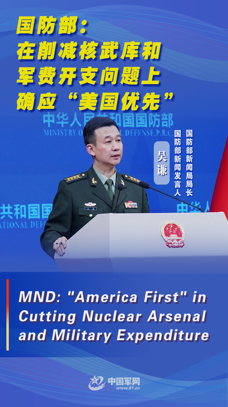 Wu Qian: It's incumbent upon the US, a country in possession of the world's largest nuclear arsenal, to fulfill its special and primary responsibilities for nuclear disarmament and further make drastic and substantive cuts to its nuclear arsenal. This is a consensus of the international community. I want to point out that China commits itself to a policy of no first use of nuclear weapons, pursues a nuclear strategy of self-defense, and keeps our nuclear strength at the minimum level required for national security. By so doing, we have contributed to world peace and security.