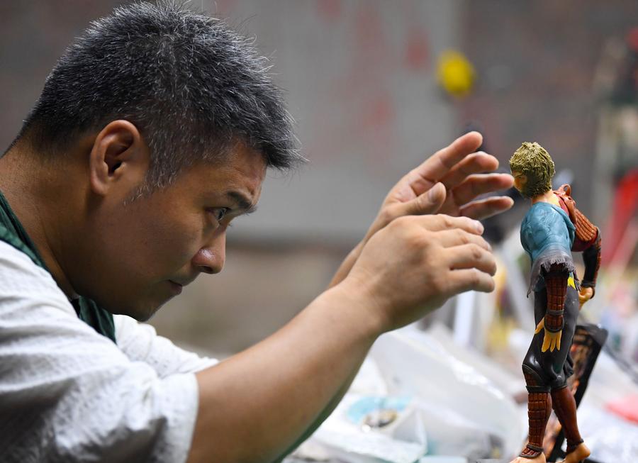 Song Zhanke makes a dough sculpture of Chinese mythological figure, the Monkey King, at his studio in Luoyang, central China's Henan Province, Aug. 27, 2024. (Xinhua/Hao Yuan)