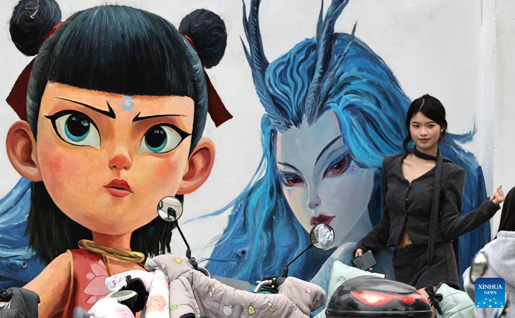 Wall paintings featuring "Ne Zha 2" attract tourists across China