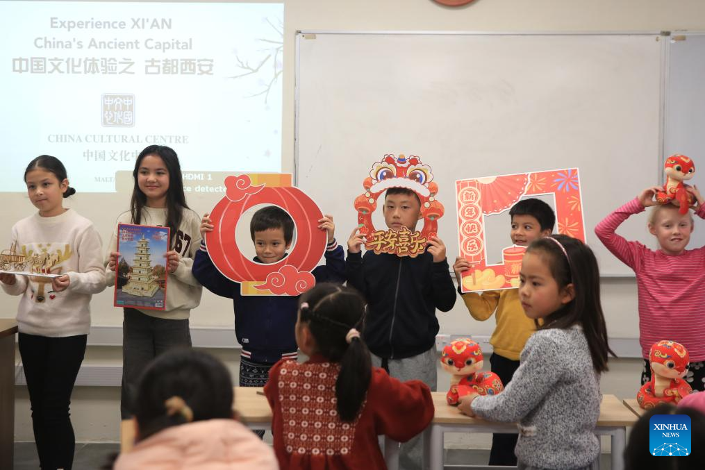 VALLETTA, March 2 (Xinhua) -- A Chinese cultural event held on Sunday at the Malta Chinese School offered students an immersive experience of "ancient Xi'an," one of China's most historic cities.