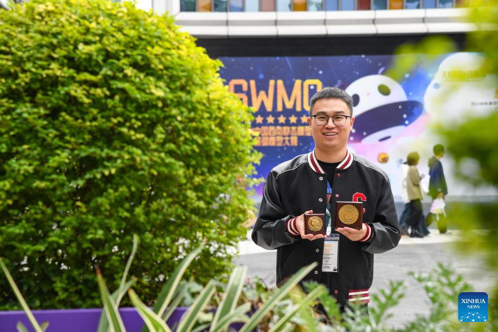 Zeng Zhou displays the medals he designed for a contest of creative ideas on static models in Chengdu, southwest China's Sichuan Province, Oct. 26, 2024. Zeng Zhou, a cultural creative product designer and planning operator born in the 1990s, has been fascinated with animation and movie peripheral products as well as trendy toys and figurines since his childhood, dreaming of developing cultural creative products that embody the charm of traditional Chinese culture.