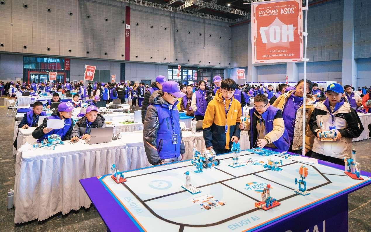 Candidates compete in the Global Final of ENJOY AI global robotics competition at the National Exhibition and Convention Center (Shanghai), Dec. 15, 2024. (People's Daily Online/Zhang Mingwei)