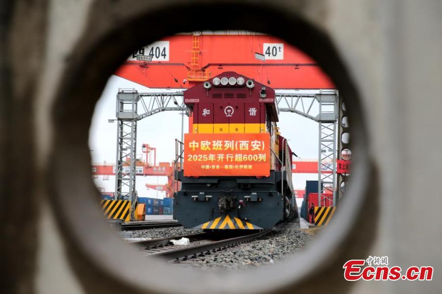 China-Europe freight train (Xi'an) makes 600 trip in 2025