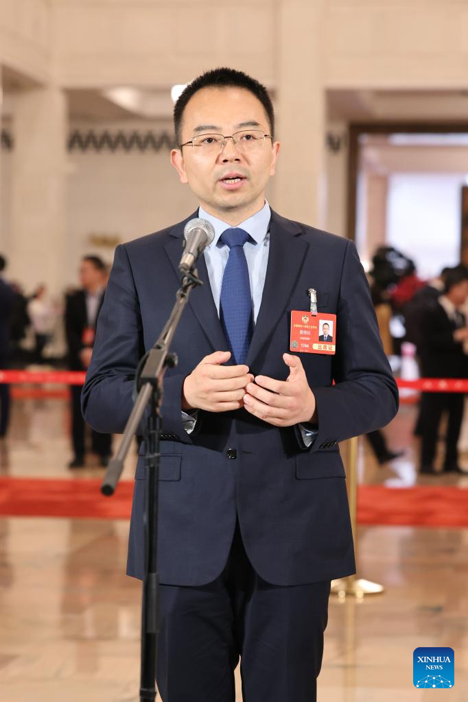 Huang Miansong, a member of the 14th National Committee of the Chinese People's Political Consultative Conference (CPPCC), attends a group interview ahead of the opening meeting of the third session of the 14th CPPCC National Committee at the Great Hall of the People in Beijing, capital of China, March 4, 2025. (Xinhua/Yin Gang)