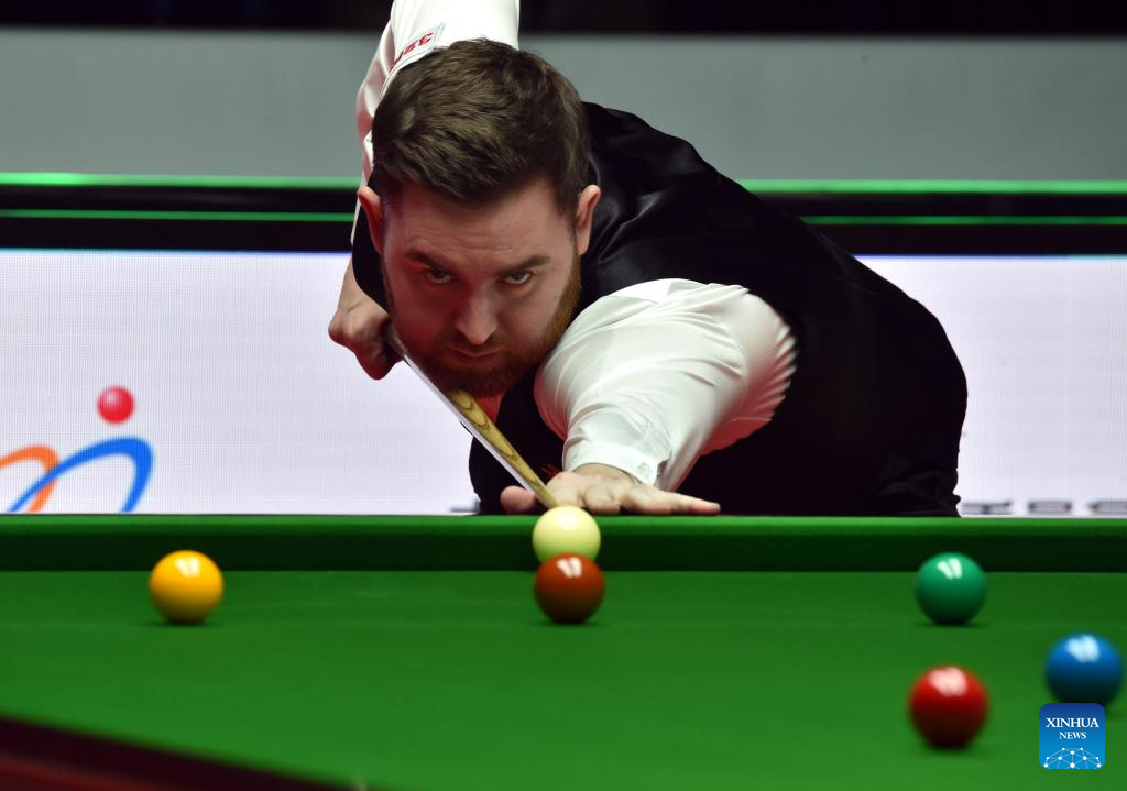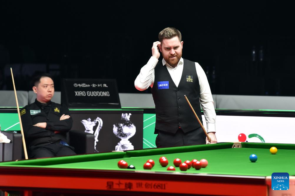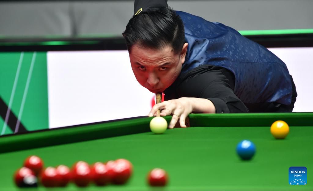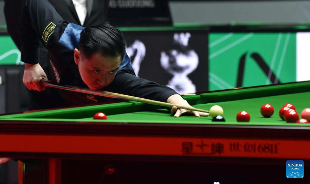 Xiao Guodong competes during the match between Jak Jones of Wales and Xiao Guodong of China at the Snooker World Grand Prix 2025 in Hong Kong, south China, on March 5, 2025. (Xinhua/Lo Ping Fai)