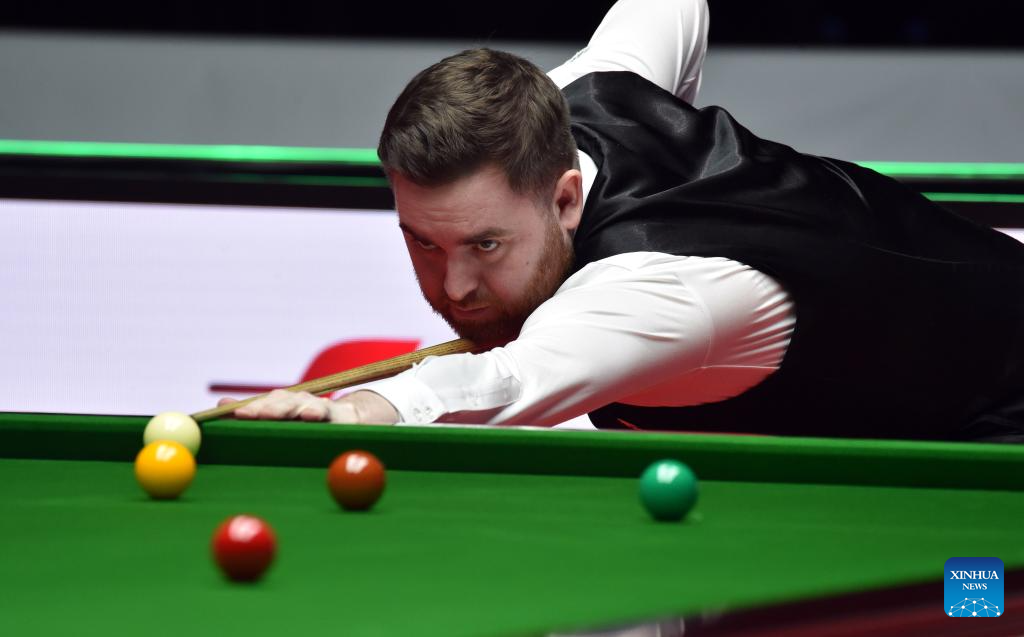 Jak Jones competes during the match between Jak Jones of Wales and Xiao Guodong of China at the Snooker World Grand Prix 2025 in Hong Kong, south China, on March 5, 2025. (Xinhua/Lo Ping Fai)