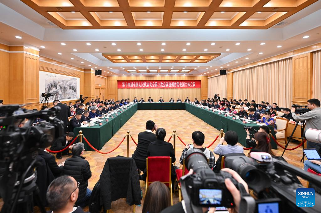 A group meeting of deputies from the delegation of Guizhou Province is held at the third session of the 14th National People's Congress (NPC) in Beijing, capital of China, March 6, 2025. (Xinhua/Xu Bingjie)