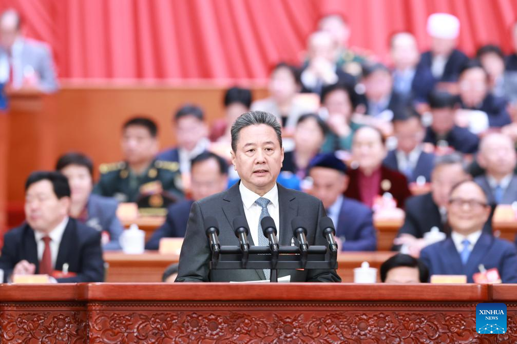 Wang Guosheng, a member of the 14th National Committee of the Chinese People's Political Consultative Conference (CPPCC), speaks at the second plenary meeting of the third session of the 14th CPPCC National Committee at the Great Hall of the People in Beijing, capital of China, March 7, 2025. (Xinhua/Wang Ye)