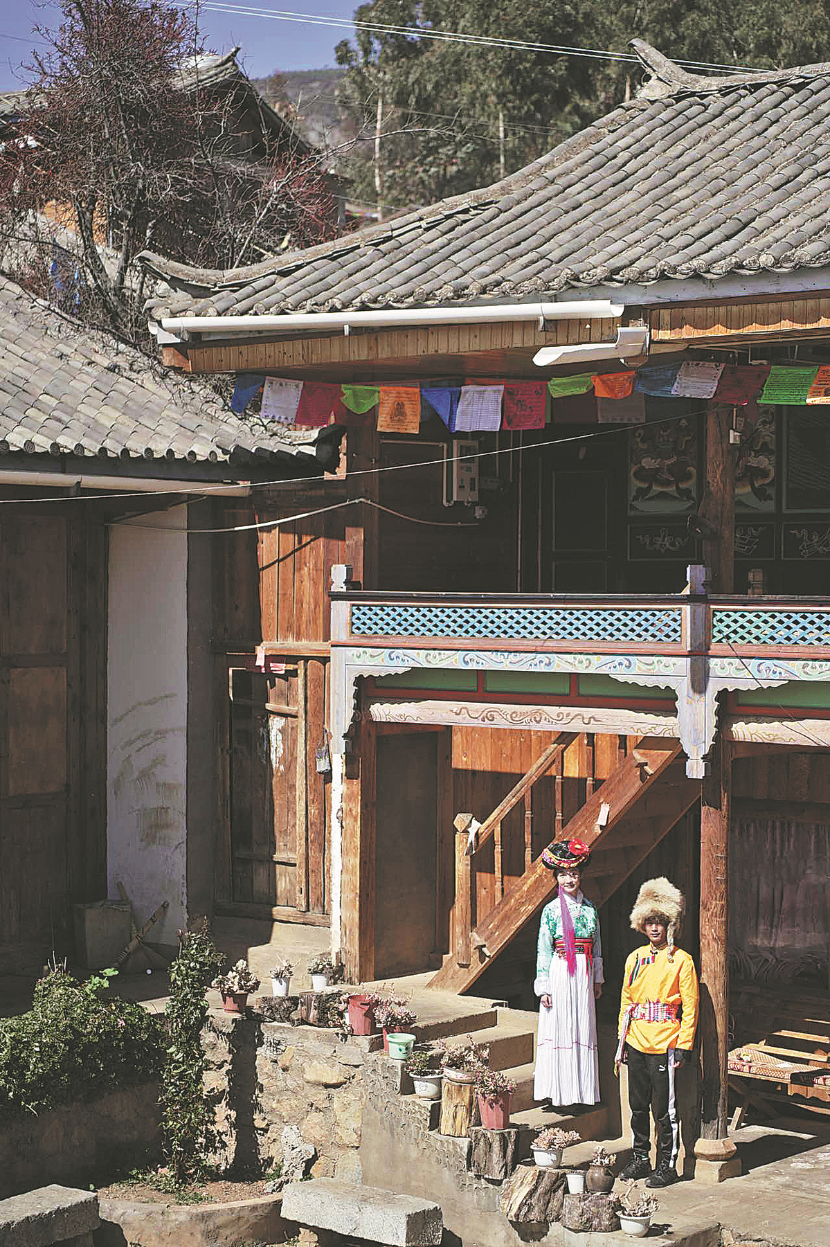 Han Xiao poses with her husband in front of their hotel in Lijiang, Yunnan province. CHINA DAILY