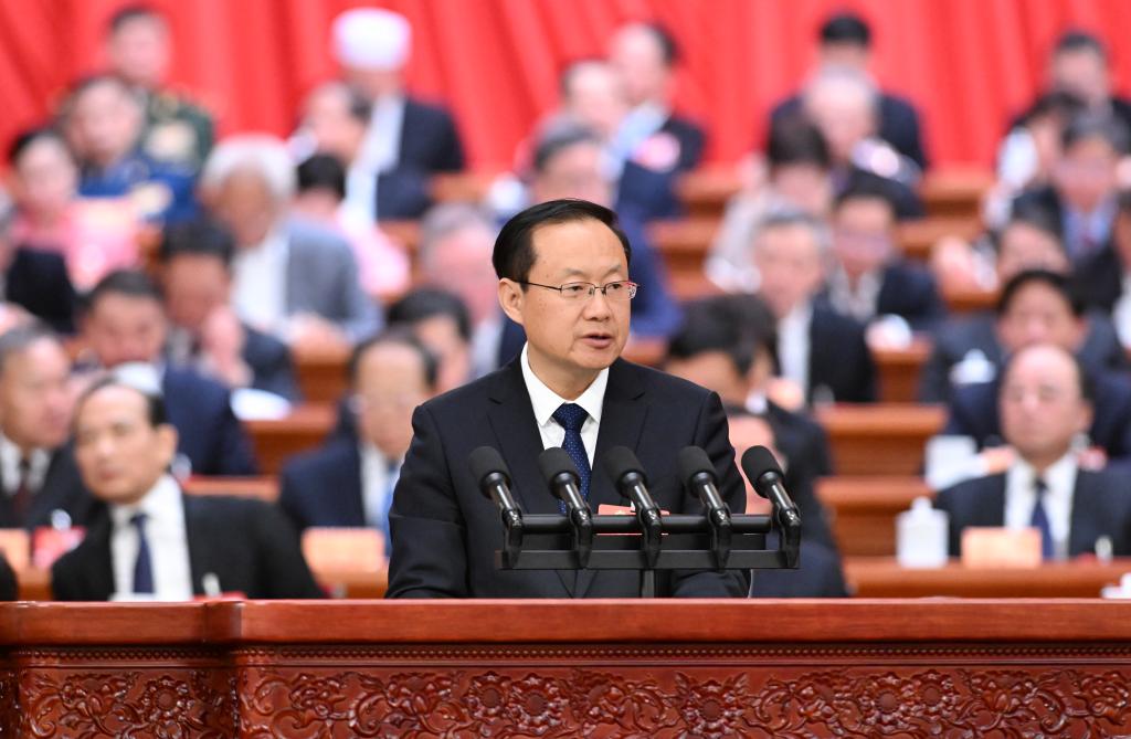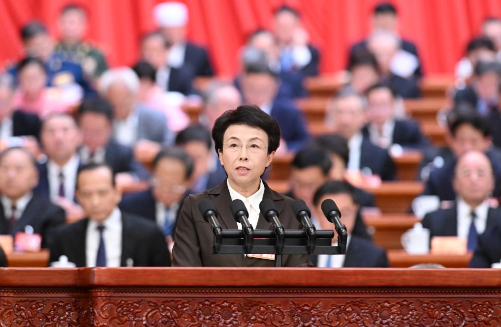 Zhao Yingmin, a member of the 14th National Committee of the Chinese People's Political Consultative Conference (CPPCC), speaks at the third plenary meeting of the third session of the 14th CPPCC National Committee at the Great Hall of the People in Beijing, capital of China, March 9, 2025. (Xinhua/Liu Weibing)