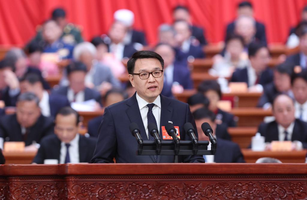 Piao Shilong, a member of the 14th National Committee of the Chinese People's Political Consultative Conference (CPPCC), speaks at the third plenary meeting of the third session of the 14th CPPCC National Committee at the Great Hall of the People in Beijing, capital of China, March 9, 2025. (Xinhua/Liu Weibing)