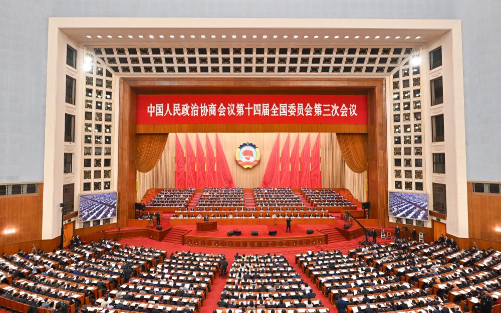 The third plenary meeting of the third session of the 14th National Committee of the Chinese People's Political Consultative Conference (CPPCC) is held at the Great Hall of the People in Beijing, capital of China, March 9, 2025. (Xinhua/Jin Liangkuai)