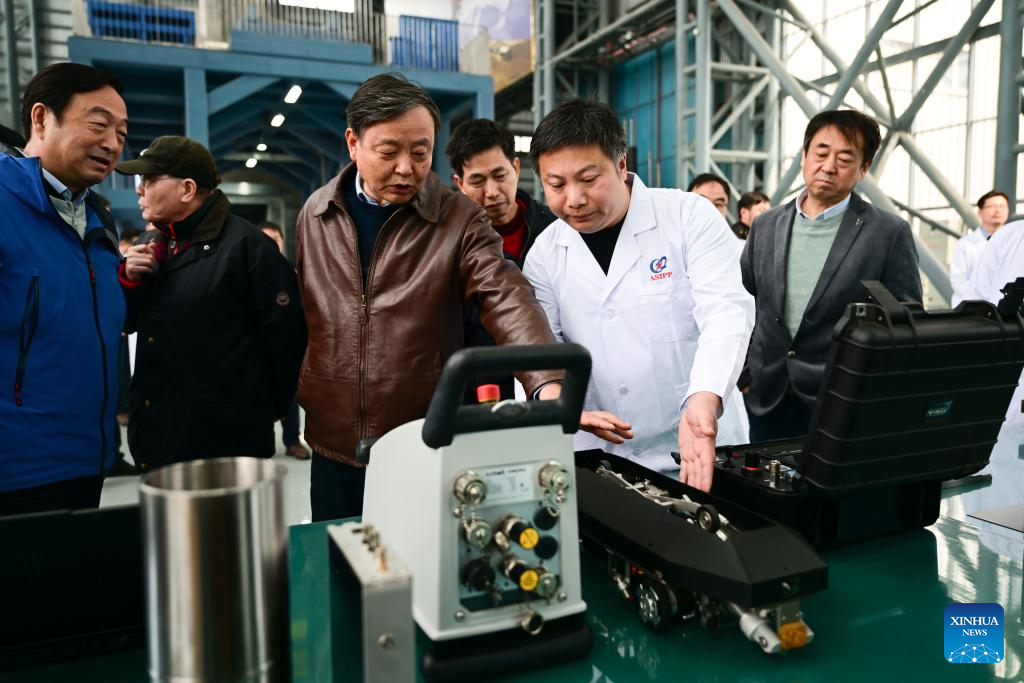 Experts conduct review and acceptance procedures on the one-eighth vacuum chamber and overall installation system, one of the key subsystems of the Comprehensive Research Facility for Fusion Technology (CRAFT), in Hefei, capital of east China's Anhui Province, March 9, 2025. (Xinhua/Zhou Mu)