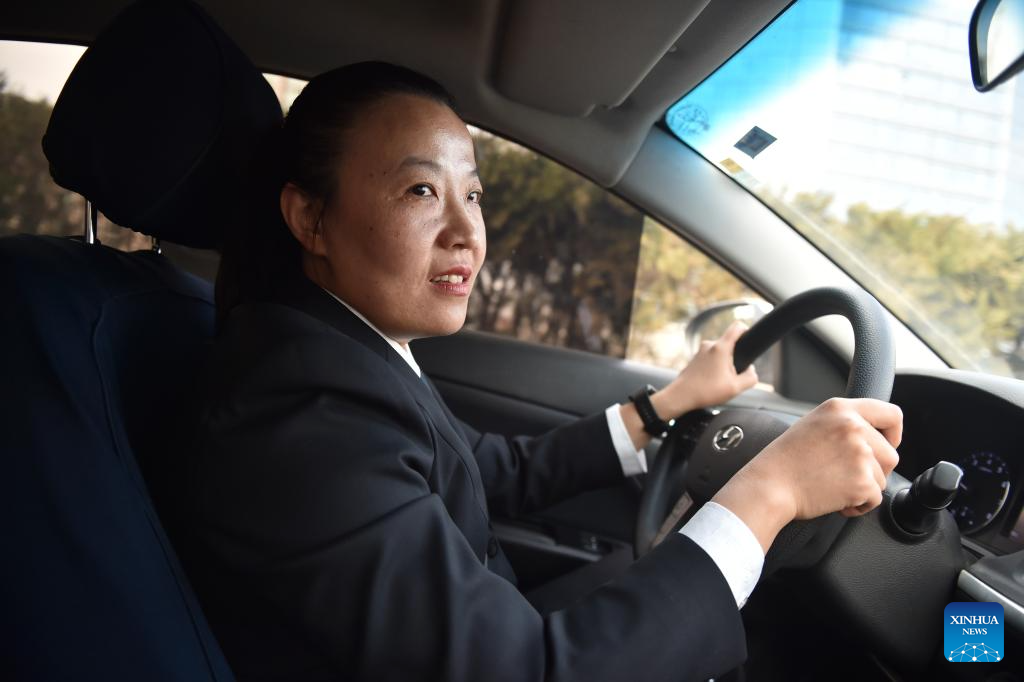 Liu Ying, a judge with the People's Court of Haidian District of Beijing, drives a car on her way to enforce a court decision in Beijing, capital of China, March 4, 2025.(Xinhua/Ren Chao)