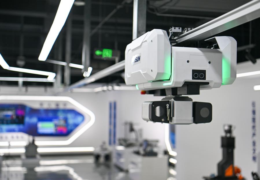 This photo taken on Feb. 20, 2025 shows a monitoring robot at Tianjin SIASUN Intelligent Technology Co., Ltd. in the Beijing-Tianjin Zhongguancun Tech Town, in Tianjin, north China. (Xinhua/Sun Fanyue)