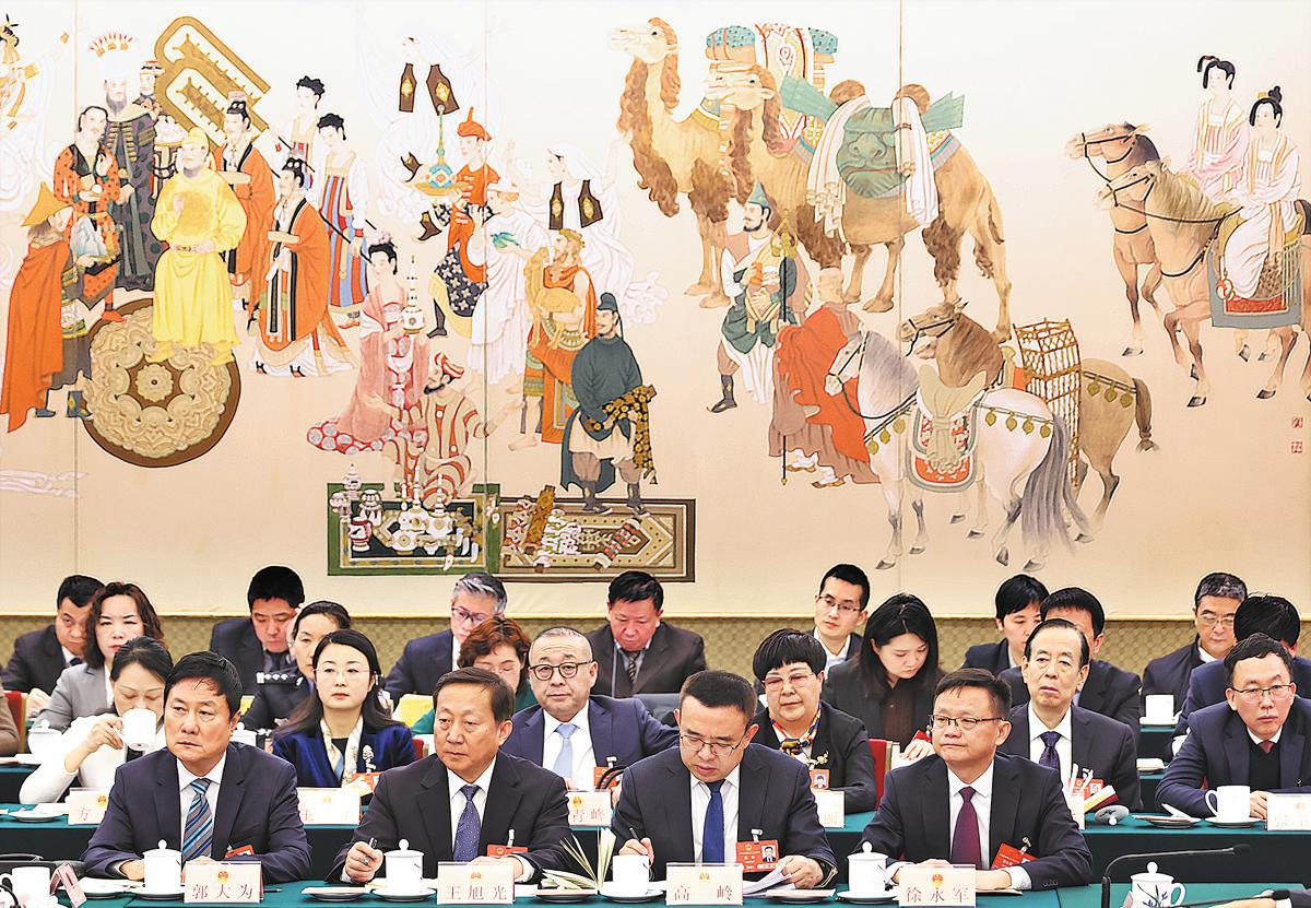 Deputies from the delegation of Shaanxi province hold a meeting during the third session of the 14th National People's Congress in Beijing on Thursday. (Feng Yongbin/China Daily)