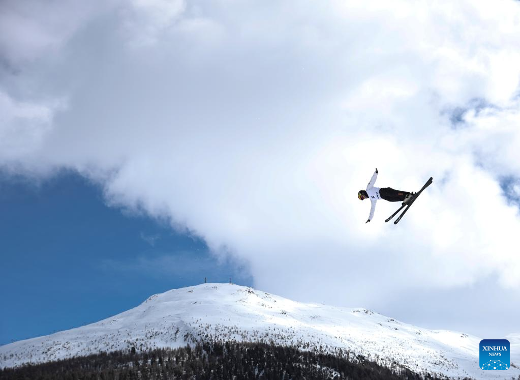 China's Qi Guangpu attends a practice session before the 2024-2025 FIS Freestyle Ski World Cup at the Livigno Aerials & Moguls Park, in Livigno, Italy, March 11, 2025. (Xinhua/Li Jing)