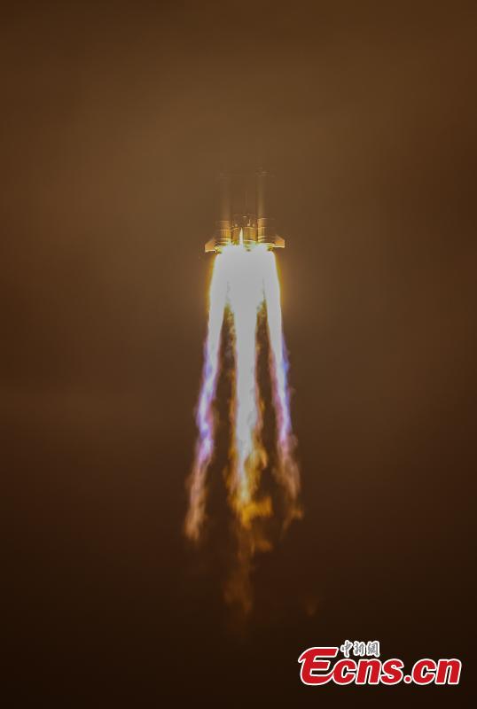 A Long March-8 Y6 carrier rocket carrying a group of 18 low Earth orbit satellites blasts off from the No. 1 launch pad of Hainan commercial spacecraft launch site in Wenchang, south China's Hainan Province, March 12, 2025. (China News Service/Luo Yunfei)