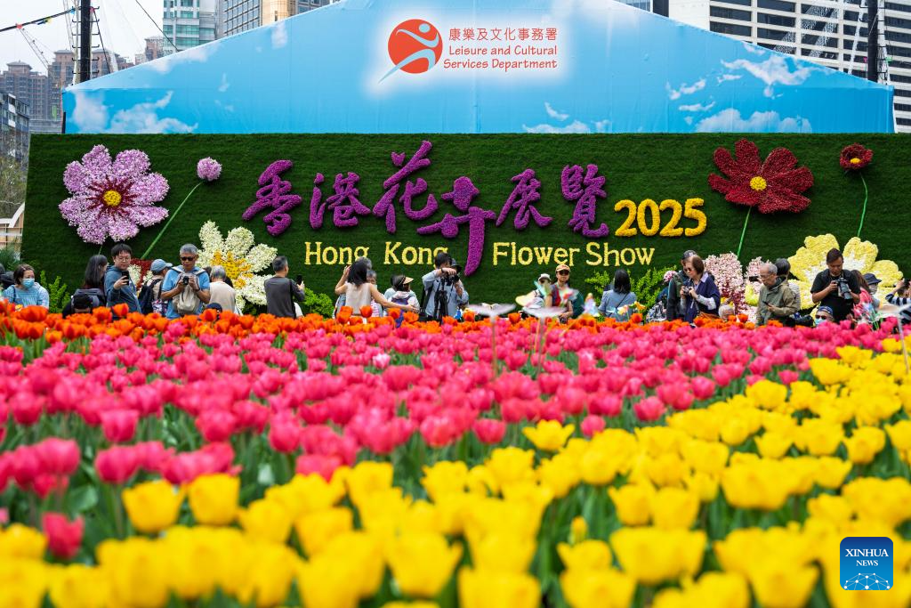 People visit Hong Kong Flower Show 2025 at the Victoria Park in south China's Hong Kong, March 14, 2025. The flower show kicked off here on Friday and will last until March 23. (Xinhua/Zhu Wei)