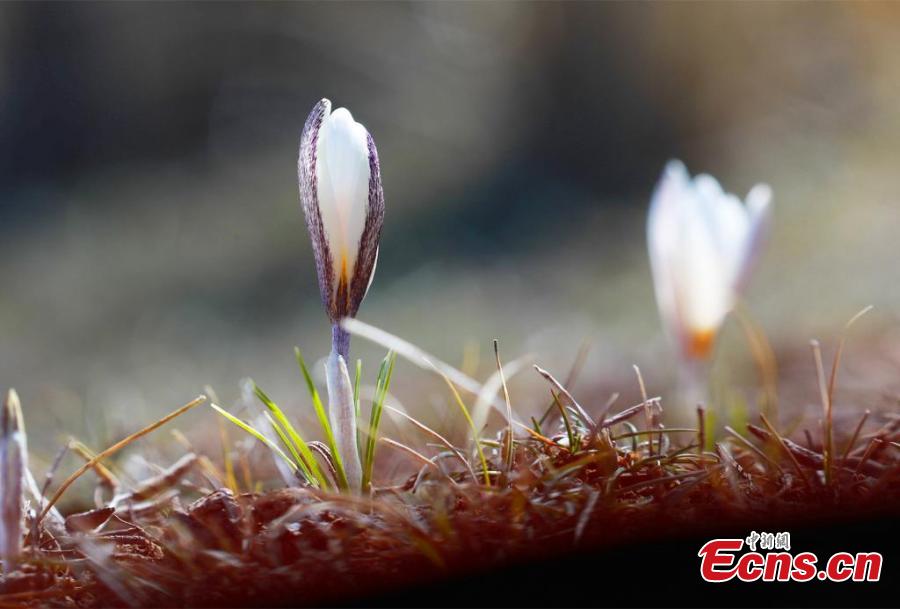 Wild lilies, also known as the top ice flowers, the first flower of spring in Xinjiang bloom on a meadow at an altitude of 1,200 meters to 3,000 meters, in the Ili Kazak Autonomous Prefecture, northwest China's Xinjiang Uygur Autonomous Region. (China News Service/Gong Xinyu)