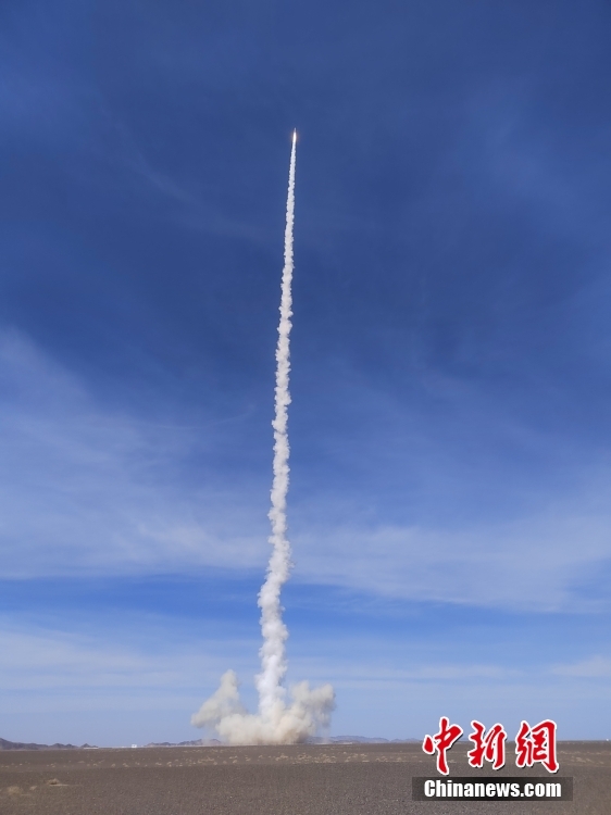 A CERES-1 carrier rocket carrying eight satellites blasts off from the Jiuquan Satellite Launch Center in northwest China, March 17, 2025. (China News Service/Wang Jiangbo)