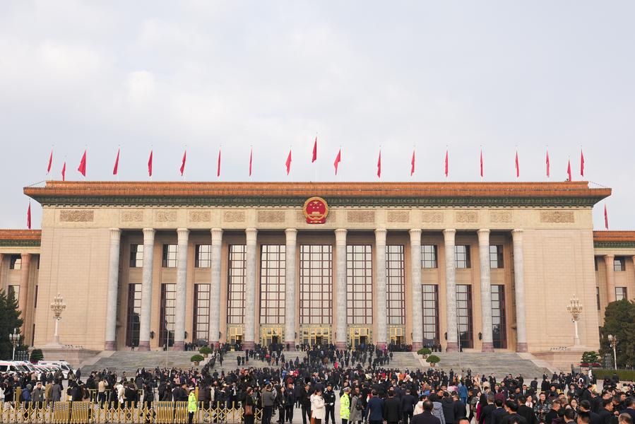 This photo taken on March 5, 2025 shows the Great Hall of the People in Beijing, capital of China. (Xinhua/Xing Guangli)